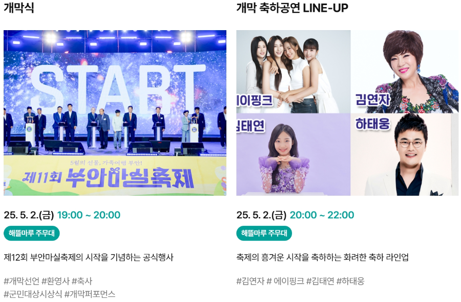 | 2025년 5월 부산 축제 총정리|놓치면 후회하는 봄날 축제 모음! (1) | 2025.04.16 |