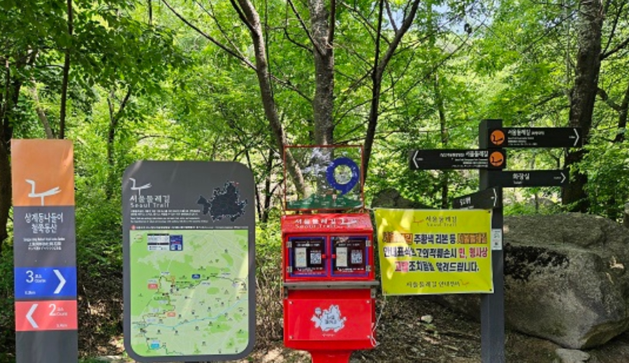 서울둘레길 공식 스탬프함이 설치되어 있어 걷기 전 인증샷과 도장 찍기를 추천드려요 😊