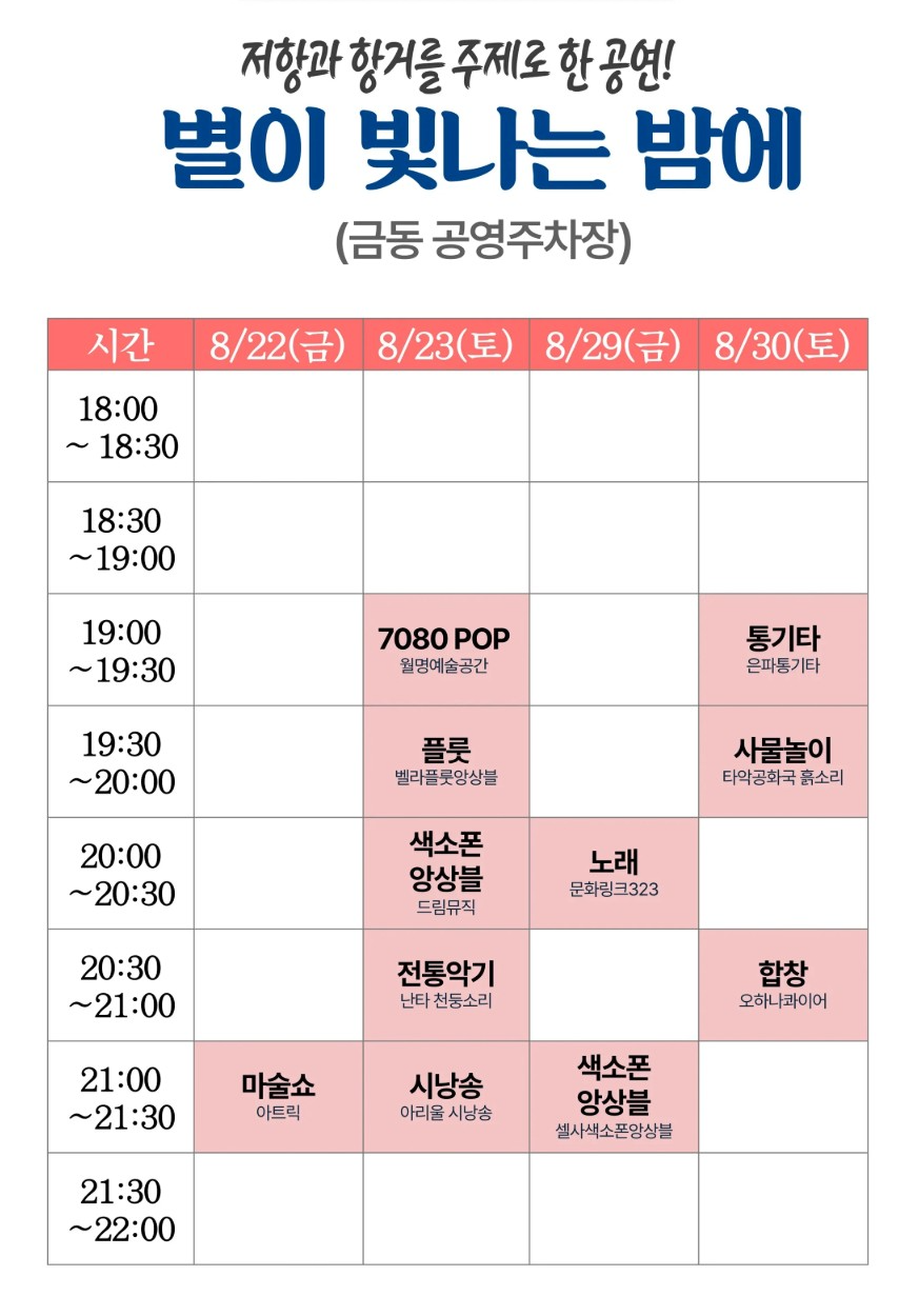- 우산 또는 돗자리 준비하면 더 편안하게 관람 가능