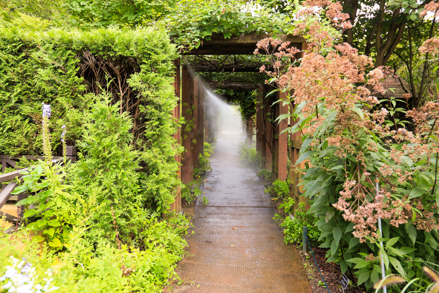 💛 여름 (7~8월) - 푸른 녹음과 시원한 나무 그늘이 있는 최고의 피서지! 연못과 작은 폭포가 있어 시원한 분위기를 연출합니다.