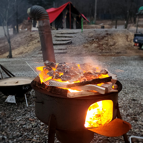캠핑장에서 빠질 수 없는 것이 바로 바비큐 파티! 🥩🍗 장을 봐서 고기를 구워 먹으며 맥주 한 잔 하는 시간은 캠핑의 꽃이죠. 캠핑장 내에서 화로 사용이 가능하고, 숯과 그릴도 대여할 수 있어 간편하게 이용할 수 있었어요.