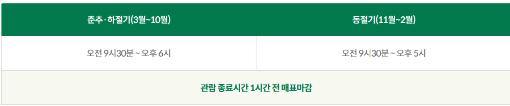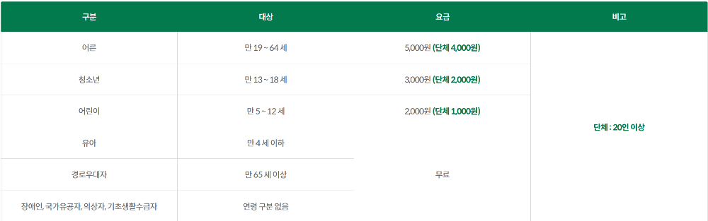 - 유료입장객 단체20인이상 인솔자 1인 무료